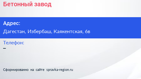 Бетонный завод по адресу Дагестан, Избербаш, Каякентская, 6в в дальнейшем Организация, размещена в следующих категориях: