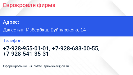 Еврокровля, фирма по адресу Дагестан, Избербаш, Буйнакского, 14 в дальнейшем Организация, размещена в следующих категориях: