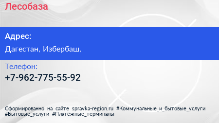 Лесобаза по адресу Дагестан, Избербаш, в дальнейшем Организация, размещена в следующих категориях: