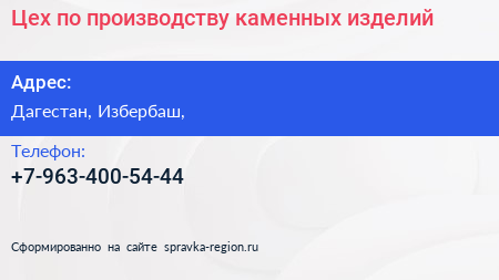 Цех по производству каменных изделий по адресу Дагестан, Избербаш, в дальнейшем Организация, размещена в следующих категориях: