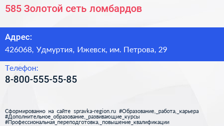 585*Золотой, сеть ломбардов по адресу 426068, Удмуртия, Ижевск, им. Петрова, 29 в дальнейшем Организация, размещена в следующих категориях: