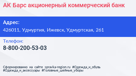 АК Барс, акционерный коммерческий банк по адресу 426011, Удмуртия, Ижевск, Удмуртская, 261 в дальнейшем Организация, размещена в следующих категориях: