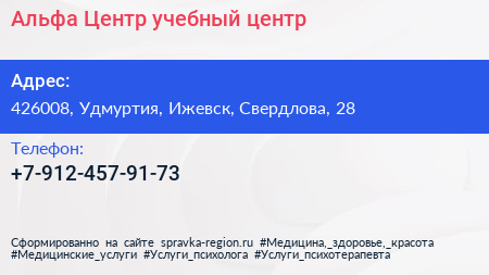 Альфа-Центр, учебный центр по адресу 426008, Удмуртия, Ижевск, Свердлова, 28 в дальнейшем Организация, размещена в следующих категориях: