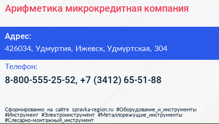 Арифметика, микрокредитная компания по адресу 426034, Удмуртия, Ижевск, Удмуртская, 304 в дальнейшем Организация, размещена в следующих категориях: