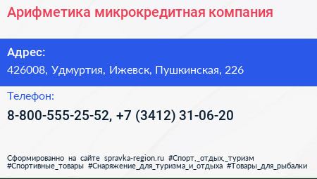 Арифметика, микрокредитная компания по адресу 426008, Удмуртия, Ижевск, Пушкинская, 226 в дальнейшем Организация, размещена в следующих категориях: