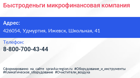 Быстроденьги, микрофинансовая компания по адресу 426054, Удмуртия, Ижевск, Школьная, 41 в дальнейшем Организация, размещена в следующих категориях: