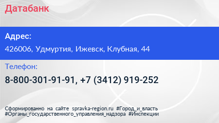 Датабанк по адресу 426006, Удмуртия, Ижевск, Клубная, 44 в дальнейшем Организация, размещена в следующих категориях: