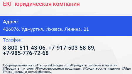 ЕКГ, юридическая компания по адресу 426076, Удмуртия, Ижевск, Ленина, 21 в дальнейшем Организация, размещена в следующих категориях: