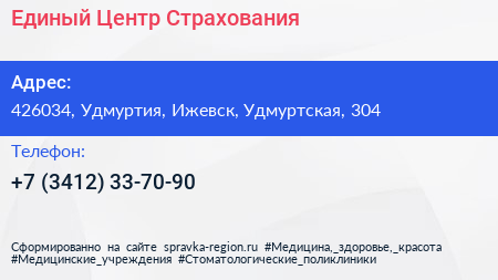Единый Центр Страхования по адресу 426034, Удмуртия, Ижевск, Удмуртская, 304 в дальнейшем Организация, размещена в следующих категориях: