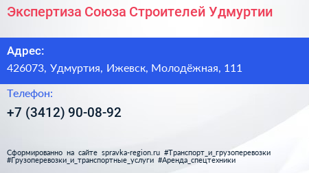 Экспертиза Союза Строителей Удмуртии по адресу 426073, Удмуртия, Ижевск, Молодёжная, 111 в дальнейшем Организация, размещена в следующих категориях:
