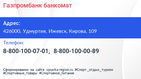 Газпромбанк, банкомат по адресу 426000, Удмуртия, Ижевск, Кирова, 109 в дальнейшем Организация, размещена в следующих категориях: