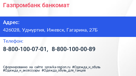 Газпромбанк, банкомат по адресу 426028, Удмуртия, Ижевск, Гагарина, 27Б в дальнейшем Организация, размещена в следующих категориях: