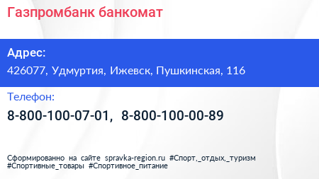 Газпромбанк, банкомат по адресу 426077, Удмуртия, Ижевск, Пушкинская, 116 в дальнейшем Организация, размещена в следующих категориях: