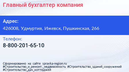 Главный бухгалтер, компания по адресу 426008, Удмуртия, Ижевск, Пушкинская, 266 в дальнейшем Организация, размещена в следующих категориях: