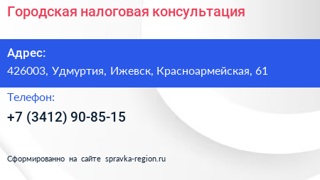 Городская налоговая консультация по адресу 426003, Удмуртия, Ижевск, Красноармейская, 61 в дальнейшем Организация, размещена в следующих категориях: