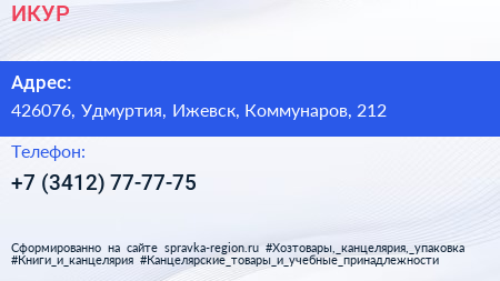 ИКУР по адресу 426076, Удмуртия, Ижевск, Коммунаров, 212 в дальнейшем Организация, размещена в следующих категориях: