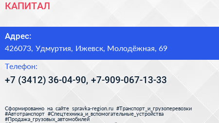 КАПИТАЛ по адресу 426073, Удмуртия, Ижевск, Молодёжная, 69 в дальнейшем Организация, размещена в следующих категориях: