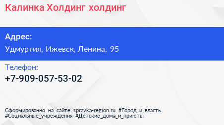 Калинка Холдинг, холдинг по адресу Удмуртия, Ижевск, Ленина, 95 в дальнейшем Организация, размещена в следующих категориях: