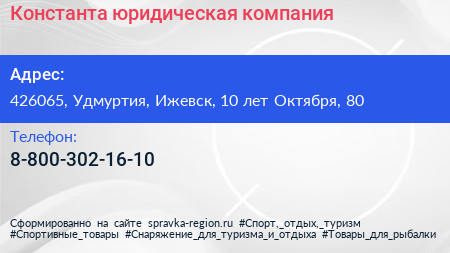 Константа, юридическая компания по адресу 426065, Удмуртия, Ижевск, 10 лет Октября, 80 в дальнейшем Организация, размещена в следующих категориях: