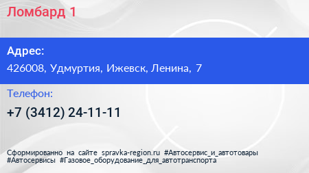Ломбард №1 по адресу 426008, Удмуртия, Ижевск, Ленина, 7 в дальнейшем Организация, размещена в следующих категориях: