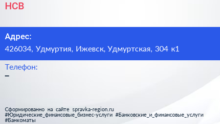 НСВ по адресу 426034, Удмуртия, Ижевск, Удмуртская, 304 к1 в дальнейшем Организация, размещена в следующих категориях: