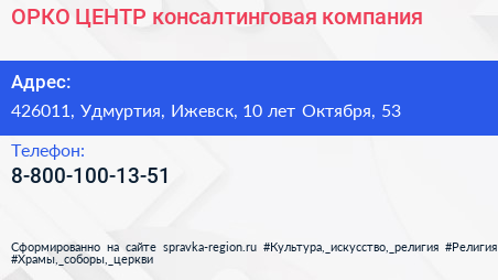ОРКО-ЦЕНТР, консалтинговая компания по адресу 426011, Удмуртия, Ижевск, 10 лет Октября, 53 в дальнейшем Организация, размещена в следующих категориях: