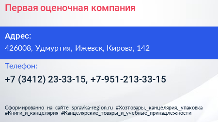 Первая оценочная компания по адресу 426008, Удмуртия, Ижевск, Кирова, 142 в дальнейшем Организация, размещена в следующих категориях: