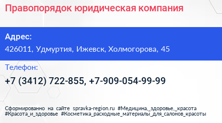 Правопорядок, юридическая компания по адресу 426011, Удмуртия, Ижевск, Холмогорова, 45 в дальнейшем Организация, размещена в следующих категориях: