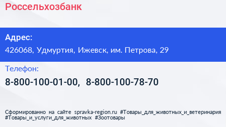 Россельхозбанк по адресу 426068, Удмуртия, Ижевск, им. Петрова, 29 в дальнейшем Организация, размещена в следующих категориях: