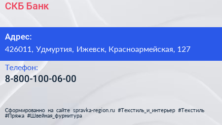 СКБ-Банк по адресу 426011, Удмуртия, Ижевск, Красноармейская, 127 в дальнейшем Организация, размещена в следующих категориях: