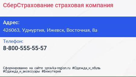 СберСтрахование, страховая компания по адресу 426063, Удмуртия, Ижевск, Восточная, 8а в дальнейшем Организация, размещена в следующих категориях: