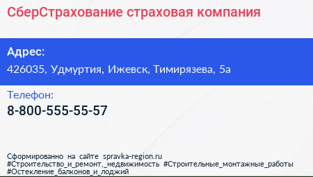 СберСтрахование, страховая компания по адресу 426035, Удмуртия, Ижевск, Тимирязева, 5а в дальнейшем Организация, размещена в следующих категориях: