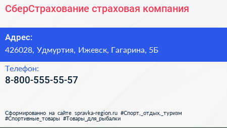 СберСтрахование, страховая компания по адресу 426028, Удмуртия, Ижевск, Гагарина, 5Б в дальнейшем Организация, размещена в следующих категориях: