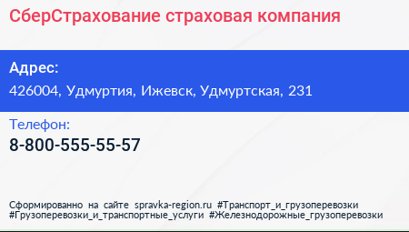 СберСтрахование, страховая компания по адресу 426004, Удмуртия, Ижевск, Удмуртская, 231 в дальнейшем Организация, размещена в следующих категориях: