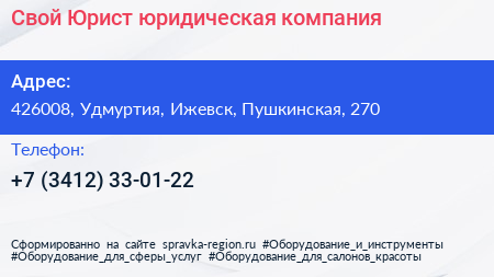 Свой Юрист, юридическая компания по адресу 426008, Удмуртия, Ижевск, Пушкинская, 270 в дальнейшем Организация, размещена в следующих категориях: