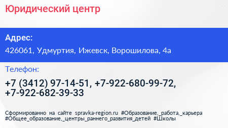 Юридический центр по адресу 426061, Удмуртия, Ижевск, Ворошилова, 4а в дальнейшем Организация, размещена в следующих категориях: