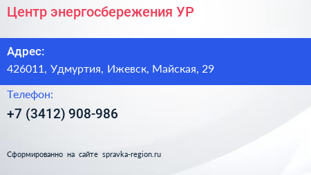 Центр энергосбережения УР по адресу 426011, Удмуртия, Ижевск, Майская, 29 в дальнейшем Организация, размещена в следующих категориях: