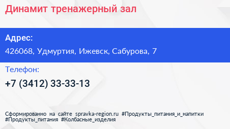 Динамит, тренажерный зал по адресу 426068, Удмуртия, Ижевск, Сабурова, 7 в дальнейшем Организация, размещена в следующих категориях: