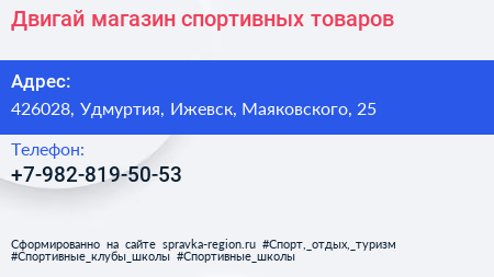 Двигай, магазин спортивных товаров по адресу 426028, Удмуртия, Ижевск, Маяковского, 25 в дальнейшем Организация, размещена в следующих категориях: