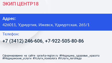 ЭКИП-ЦЕНТР18 по адресу 426011, Удмуртия, Ижевск, Удмуртская, 265/1 в дальнейшем Организация, размещена в следующих категориях: