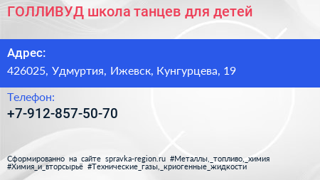 ГОЛЛИВУД, школа танцев для детей по адресу 426025, Удмуртия, Ижевск, Кунгурцева, 19 в дальнейшем Организация, размещена в следующих категориях: