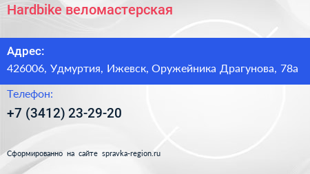 Hardbike, веломастерская по адресу 426006, Удмуртия, Ижевск, Оружейника Драгунова, 78а в дальнейшем Организация, размещена в следующих категориях:
