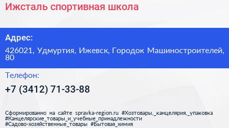 Ижсталь, спортивная школа по адресу 426021, Удмуртия, Ижевск, Городок Машиностроителей, 80 в дальнейшем Организация, размещена в следующих категориях: