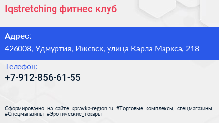 Iqstretching, фитнес-клуб по адресу 426008, Удмуртия, Ижевск, улица Карла Маркса, 218 в дальнейшем Организация, размещена в следующих категориях:
