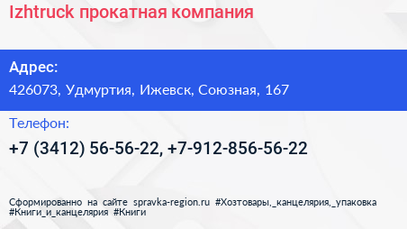 Izhtruck, прокатная компания по адресу 426073, Удмуртия, Ижевск, Союзная, 167 в дальнейшем Организация, размещена в следующих категориях: