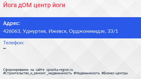 Йога дОМ, центр йоги по адресу 426063, Удмуртия, Ижевск, Орджоникидзе, 33/1 в дальнейшем Организация, размещена в следующих категориях:
