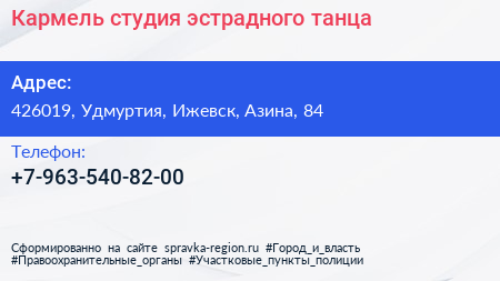 Кармель, студия эстрадного танца по адресу 426019, Удмуртия, Ижевск, Азина, 84 в дальнейшем Организация, размещена в следующих категориях: