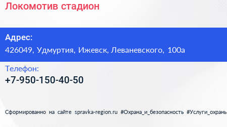 Локомотив, стадион по адресу 426049, Удмуртия, Ижевск, Леваневского, 100а в дальнейшем Организация, размещена в следующих категориях: