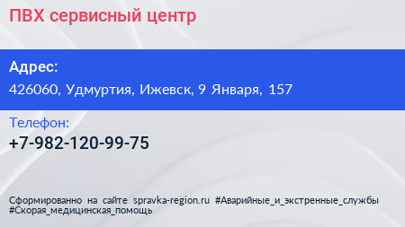 ПВХ, сервисный центр по адресу 426060, Удмуртия, Ижевск, 9 Января, 157 в дальнейшем Организация, размещена в следующих категориях: