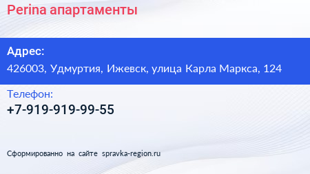 Perina, апартаменты по адресу 426003, Удмуртия, Ижевск, улица Карла Маркса, 124 в дальнейшем Организация, размещена в следующих категориях: